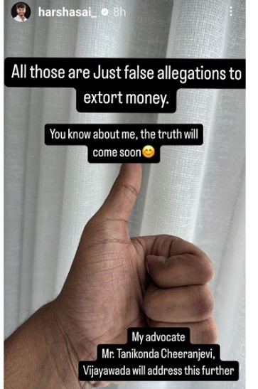 இந்த புகாரின் அடிப்படையில் ஹர்ஷா சாய் மீது பல்வேறு பிரிவுகளில் வழக்குப்பதிவு செய்துள்ள காவல்துறையினர் அவரை தேடி வருகின்றனர். தான் மீது சுமத்தப்பட்டது பொய் புகார் என்றும் தன் வழக்கறிஞர் இந்த புகாரை சட்டப்படி எதிர்கொள்வார் என்றும் சமூக வலைத்தளத்தில் பதிவிட்ட பின் செல் போனை சுவிட்ச் ஆப் செய்து விட்டு குடும்பத்துடன் தலைமறைவாகி விட்டார்.