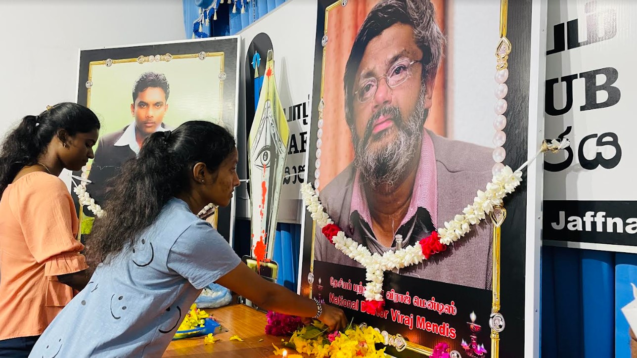அஸ்வினின் திருவுருவ படத்திற்கு அஸ்வினின் பெற்றோர் மலர்மாலை அணிவித்தனர். தொடர்ந்து தேசிய பற்றாளர் விராஜ் மென்டீஸின் திருவுருவ படத்திற்கு, யாழ் பல்கலைகழ கலைப்பீடாதிபதி கலாநிதி ரகுராமும், ஊடக கற்கைகள் துறை தலைவர் பூங்குழலி ஆகியோர் மலர்மாலை அணிவித்தனர்.