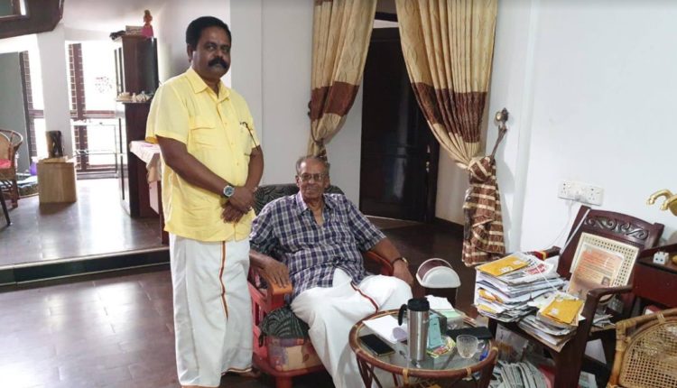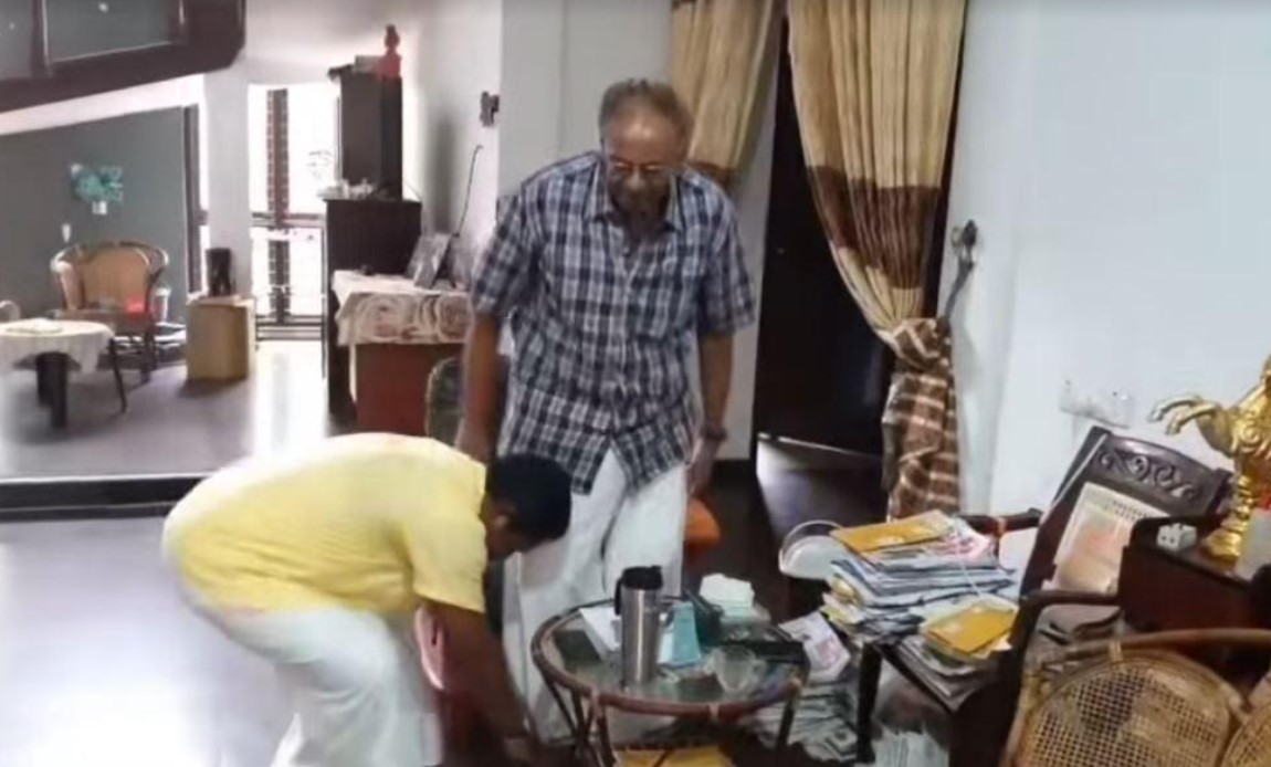 நாடாளுமன்ற முன்னாள் உறுப்பினர் சிவஞானம் சிறிதரன் தமிழரசு கட்சியின் தலைவர் மாவை சேனாதிராஜாவின் காலில் விழுந்து ஆசீர்வாதம் பெற்றுக்கொண்டார்.