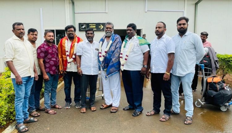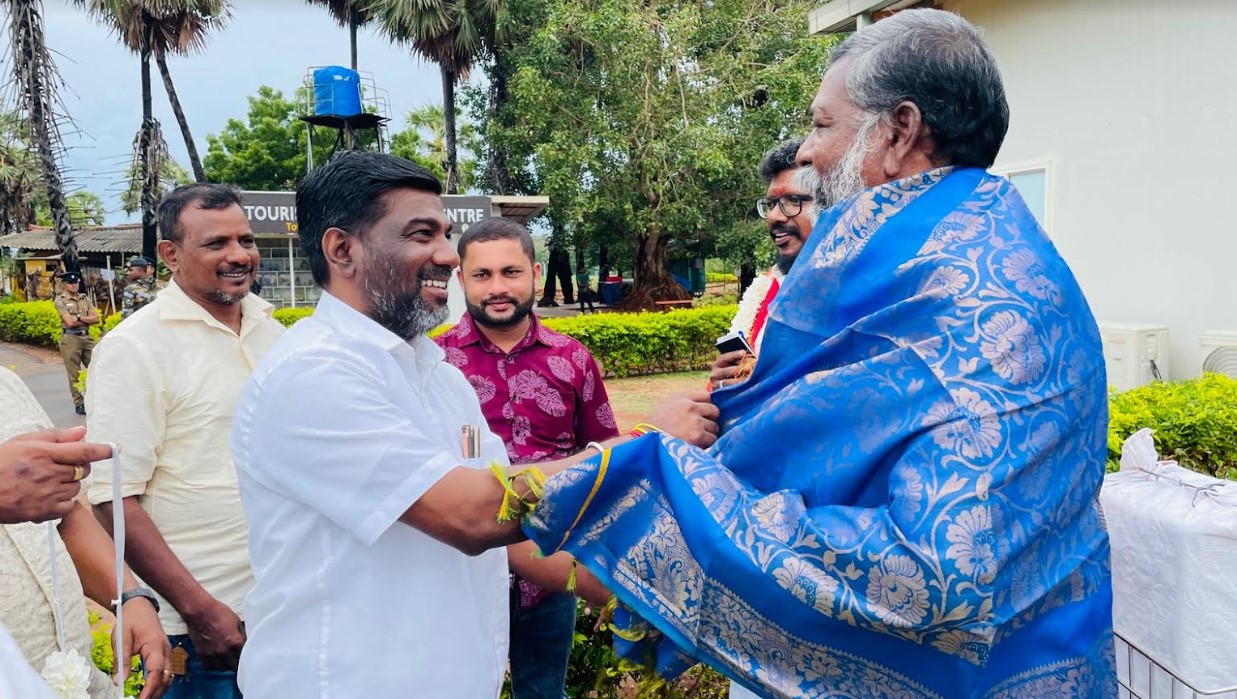 யாழ்ப்பாணம் வருகை தந்தவர்களை பிரபல வர்த்தகர் ஞானப்பிரகாசம் சுலக்சன் தலைமையில் , தமிழ் தேசிய முற்போக்கு கட்சியின் செயலாளர் சுதர்சிங் விஜயகாந்த் உள்ளிட்டோர் பொன்னாடை போர்த்தி மலர்மாலை அணிவித்து வரவேற்றனர்.