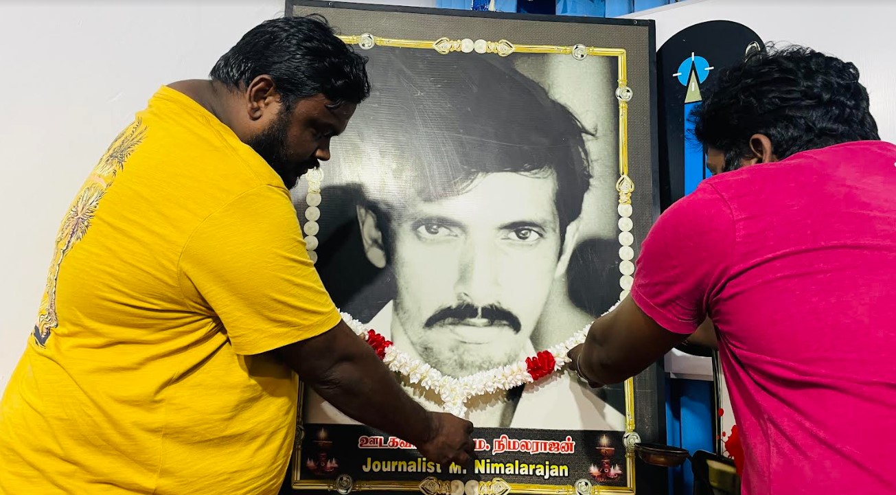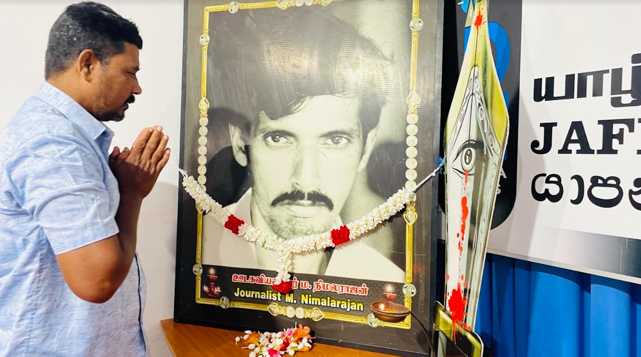 யாழ். ஊடக அமையத்தில், அமையத்தின் தலைவர் கு.செல்வக்குமார் தலைமையில் இடம்பெற்ற நிகழ்வில் நிமலராஜனின் திருவுரு படத்திற்கு மலர் மாலை அணிவித்து, பொதுச்சுடர் ஏற்றி மலரஞ்சலி செலுத்தப்பட்டது.