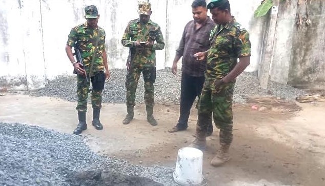 கட்டட வேலைக்காக கொட்டப்பட்ட மண்ணுக்குள் இருந்து மீட்கப்பட்ட கைக்குண்டை செயலிழக்கச் செய்ய விசேட அதிரடி படையினரால் நடவடிக்கை முன்னெடுக்கப்பட்டுள்ளது.