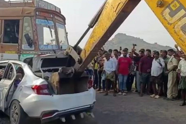 இந்த கோர விபத்தில் காரில் பயணம் செய்த அனந்தபூரை சேர்ந்த சந்தோஷ், ஷண்முக், வெங்கண்ணா, ஸ்ரீதர், பிரசன்னா, வெங்கி ஆகிய 6 பேரும் சம்பவ இடத்திலேயே உயிரிழந்துள்ளனர்.
