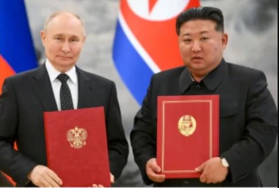 வடகொரியாவுக்கும் ரஷ்யாவுக்கும் இடையே பாதுகாப்பு ஒப்பந்தம் ஆத்திரப்பூர்வமாக அறிவிக்கப்பட்டுள்ளது. இதன் கீழ், இரு நாடுகளும் ஒருவருக்கொருவர் இராணுவ உதவிகளை வழங்கும்.