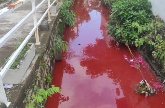 சிவப்பு நிறமாக மாறிய கால்வாய்