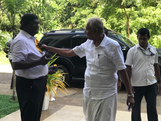இந்நிலையில் சுமந்திரனுக்கும் அதனை வழங்க முற்பட்டபோது அவர் அதனைப் பெற்றுக்கொள்ள மறுத்துவிட்டுச் சென்றார்.