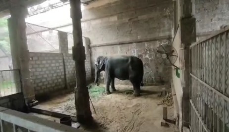 நேற்று மாலை முதலே யானை கூண்டிற்குள் பூட்டி வைக்கப்பட்டுள்ளது. அதனை பராமரிக்கும் பாகன்கள் மட்டுமே உணவினை வழங்கும் நேரத்திற்கு மட்டும் உள்ளே சென்று உணவினை வழங்கி விட்டு வெளியே வந்து யானை பராமரிக்கப்படும் அறையை பூட்டிவிட்டு செல்கின்றனர்.