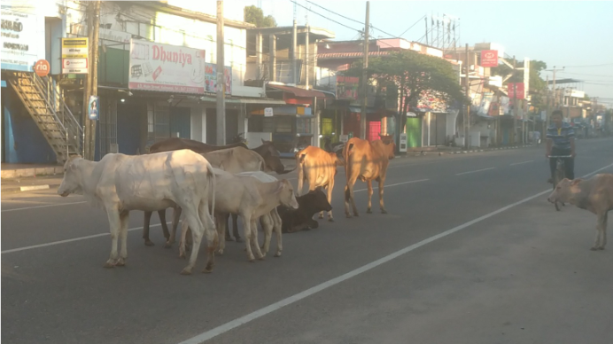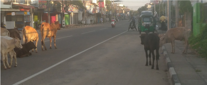 கட்டாக்காலி மாடுகள் நாய்களினால் போக்குவரத்து சிரமம்-அம்பாறையில் சம்பவம்