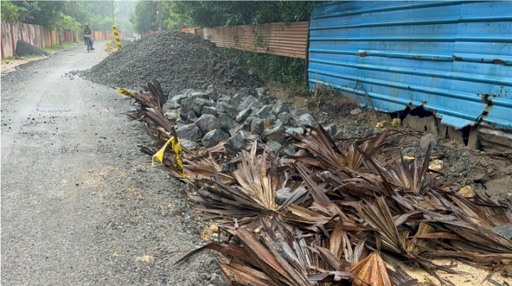 சாவகச்சேரி நகரசபைக்குட்பட்ட மீசாலை அல்லாரை பிரதான வீதி புனரமைப்பு பணிகள் முன்னெடுக்கப்பட்டுள்ள நிலையில் வீதியின் சில இடங்களில் காவோலைகள் போடப்பட்டு , அதன் மீது கற்கள் பரவப்பட்டு , வீதி புனரமைப்பு பணிகள் முன்னெடுக்கப்பட்டு வருகிறது.