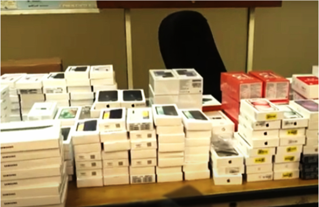 அதன்போது, 309 கையடக்கத் தொலைபேசிகள், 08 டெப்கள், கையடக்கத் தொலைபேசி பாகங்கள், 12 மடிக்கணினிகள், 02 மேக் புத்தகங்கள், 04 ஐபேட்கள், 20 ஸ்மார்ட் கைக்கடிகாரங்கள், 05 ரவுட்டர்கள், 30 இயர் பட்கள் என்பன சுங்க அதிகாரிகளால் கைப்பற்றப்பட்டுள்ளன.