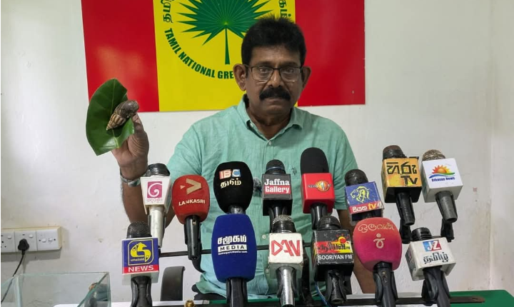 ஆபிரிக்க நத்தைகள் தொடர்பாக இன்று ஞாயிற்றுக்கிழமை (22.12.2024) பொ. ஐங்கரநேசன் தமிழ்த்தேசியப் பசுமை இயக்கத்தின் அலுவலகத்தில் நிகழ்த்திய ஊடகவியலாளர் சந்திப்பிலேயே இவ்வாறு எச்சரித்துள்ளார்.