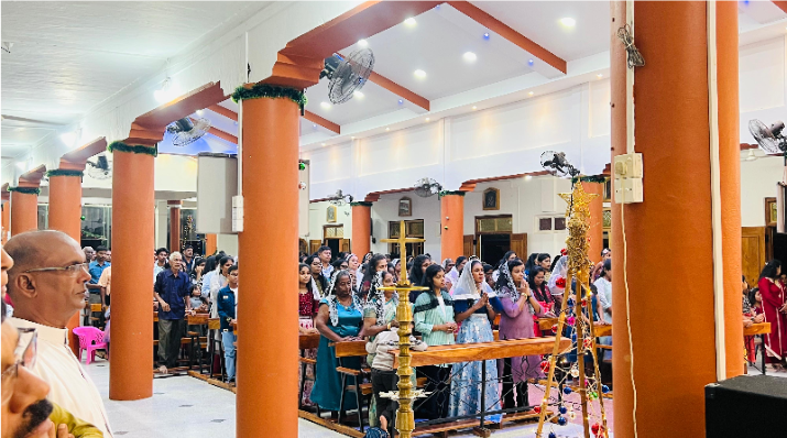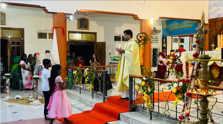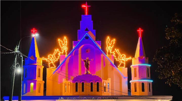 நத்தார் நள்ளிரவு திருப்பலி கல்முனை திரு இருதயநாதர் தேவாலயத்தில் ஒப்புக் கொடுக்கப்பட்டது.