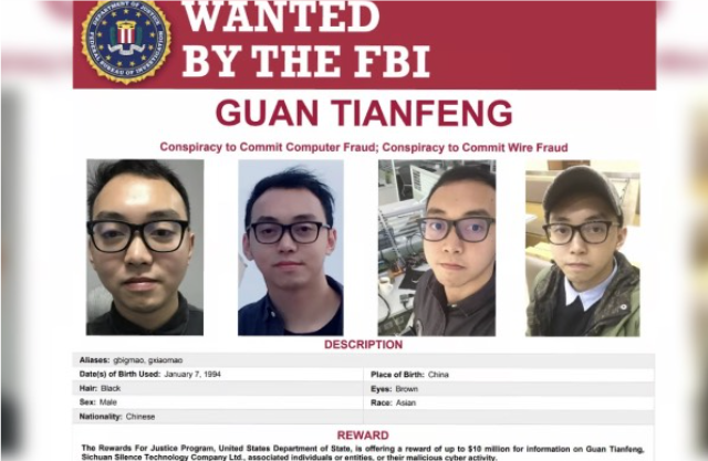 செங்டுவை தளமாகக் கொண்ட சிச்சுவான் சைலன்ஸ் இன்ஃபர்மேஷன் டெக்னாலஜி நிறுவனம் மற்றும் அதன் ஊழியர் குவான் தியான்ஃபெங் ஆகியோர் இந்த தாக்குதலுக்குப் பின்னால் இருப்பதாக அமெரிக்கா குற்றம் சாட்டுகிறது.
