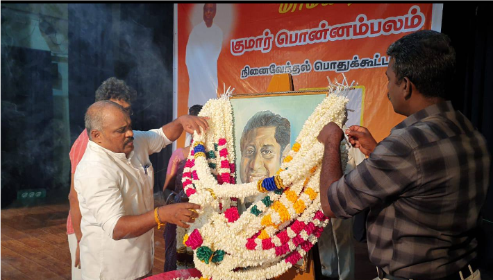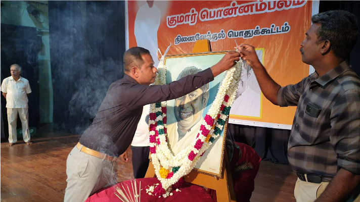 தொடர்ந்து குமார் பொன்னம்பலத்தின் திருவுருவப் படத்திற்கு மலர் மாலை அணிவிக்கப்பட்டதோடு மலரஞ்சலியும் செலுத்தப்பட்டது .