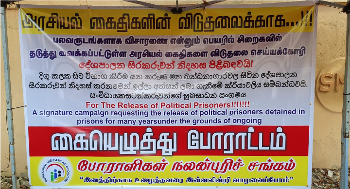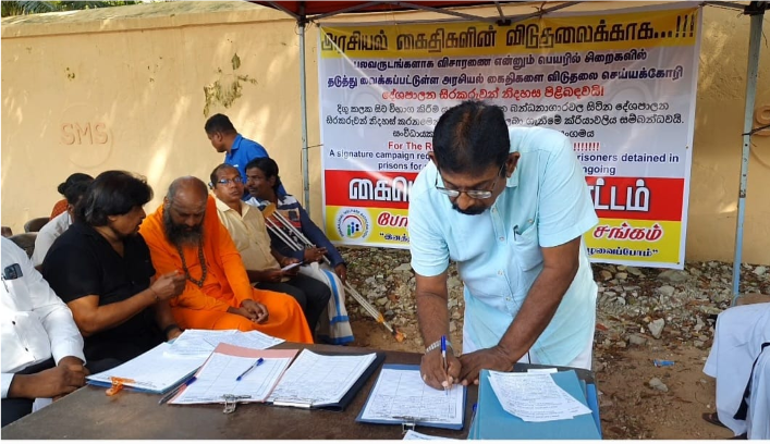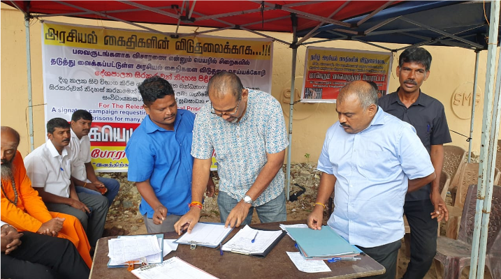 அரசியல் கைதிகளின் விடுதலை வலியுறுத்தி போராளிகள் நலன்புரிச் சங்கத்தால் முன்னெடுக்கப்படும் கையெழுத்துப் போராட்டம்