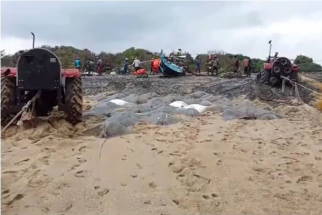 நேற்று மாலை முல்லைத்தீவு கடலில் கரைவலை மூலம் 8000ம் கிலோ திருக்கை மீன் பிடிக்கப்பட்டுள்ளது.