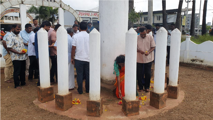 இதன் போது உயிரிழந்த ஒன்பது உறவுகளையும் நினைவு கூறி அமைக்கப்பட்ட நினைவுத்தூபியின் முன் சி.வீ.கே சிவஞானத்தினால் பொதுச்சுடர் ஏற்றப்பட்டதோடு மலரஞ்சலியும் செலுத்தப்பட்டு அக வணக்கமும் செலுத்தப்பட்டது.