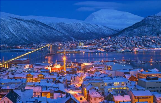 நோர்வே நாட்டில் அமைந்துள்ள Tromsø நகரமானது ஆர்க்டிக் வட்டத்திற்கு வடக்கே 200 மைல் தொலைவில் அமைந்துள்ளது. இதனால் குளிர்காலம் மற்றும் கோடை இரண்டிலும் தீவிர வெளிச்ச மாறுபாடுகளை இப்பகுதி அனுபவிக்கிறது.