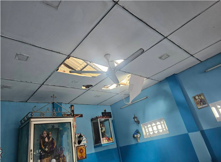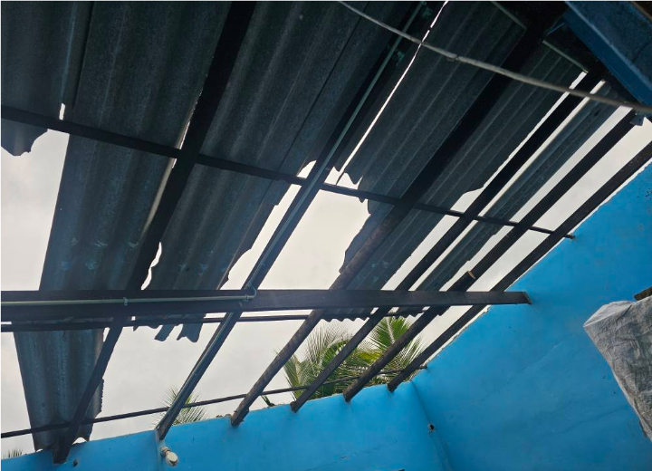 யாழ்ப்பாணம் குருநகர் பகுதியில் இன்றைய தினம் ஞாயிற்றுக்கிழமை காலை வேளை வீசிய மினி புயல் காரணமாக சில கட்டடங்களின் கூரைகள் சேதமடைந்துள்ளன.