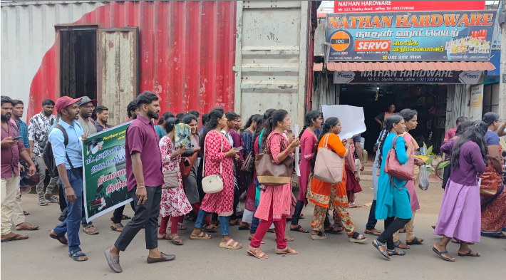 யாழ்ப்பாணம் வீரசிங்கம் மண்டபத்திற்கு முன்னால் ஆரம்பமாக குறித்த போராட்டம் யாழ். நகரத்தின் ஊடாக பயணித்து ஆளுநர் அலுவலகத்தை வந்தடைந்தது.