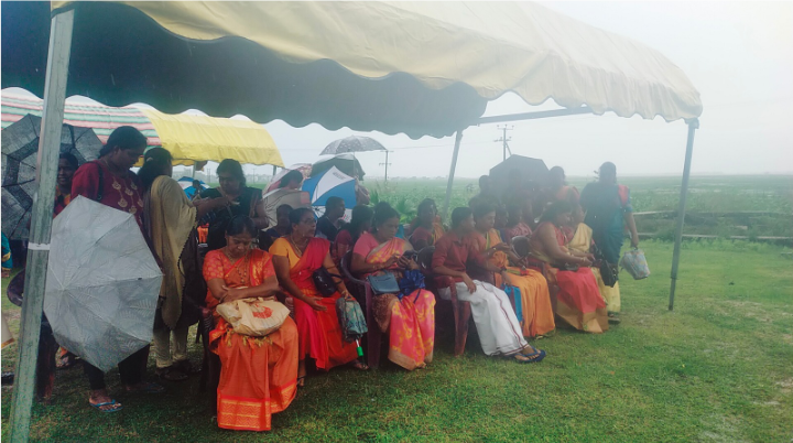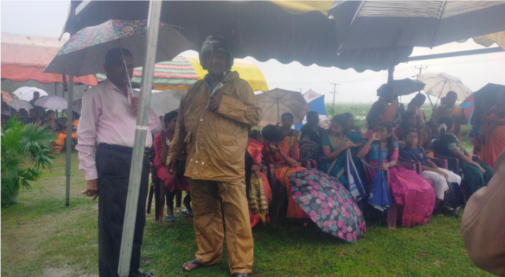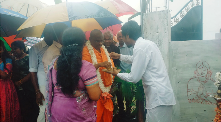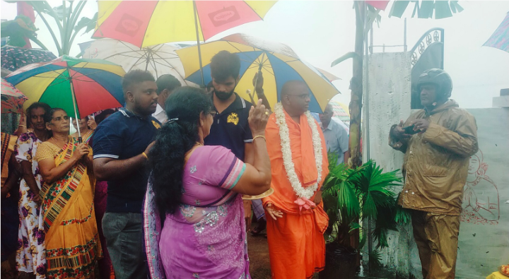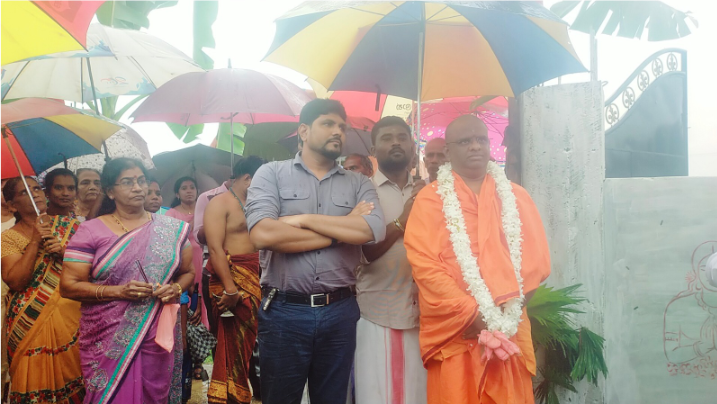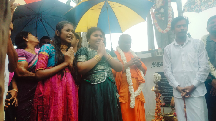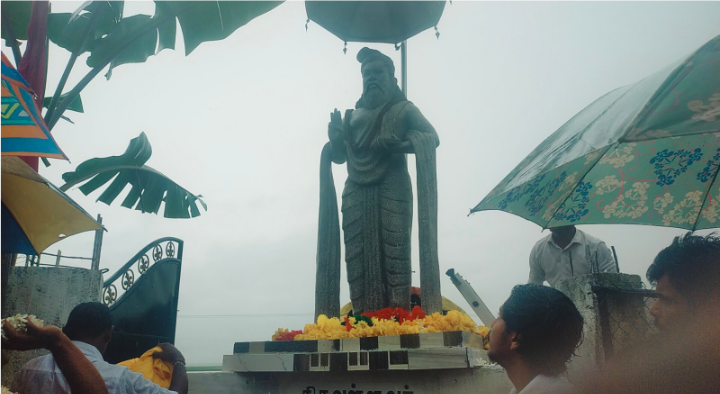 நீதிமன்ற தடை உத்தரவு பெறப்பட்ட நிலையில் சர்ச்சைக்கு மத்தியில் 10 அடி உயரமான திருவள்ளுவர் சிலை கொட்டும் அடை மழைக்கும் மத்தியில் திரை நீக்கம் செய்து வைக்கப்பட்டுள்ளது.