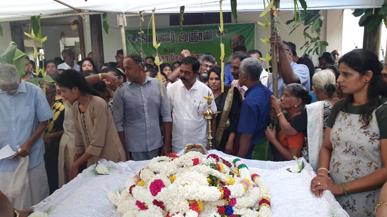 அவரது புகழுடல் வைக்கப்பட்டுள்ள மாவிட்டப்புரம் இல்லத்தில் இன்று காலை 8.00 மணியளவில் இறுதிக் கிரியைகள் ஆரம்பமாகியுள்ளதுடன், 10.00 மணியளவில் அஞ்சலி உறைகள் இடம்பெறவுள்ளன.