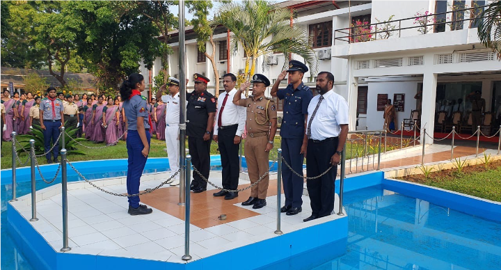 யாழ் மாவட்ட செயலர் அணிவகுப்பு மரியாதைகளை தொடர்ந்து 08.04 மணிக்கு தேசிய கொடி ஏற்றப்பட்டு , தேசிய கீதம் இசைக்கப்பட்டது.