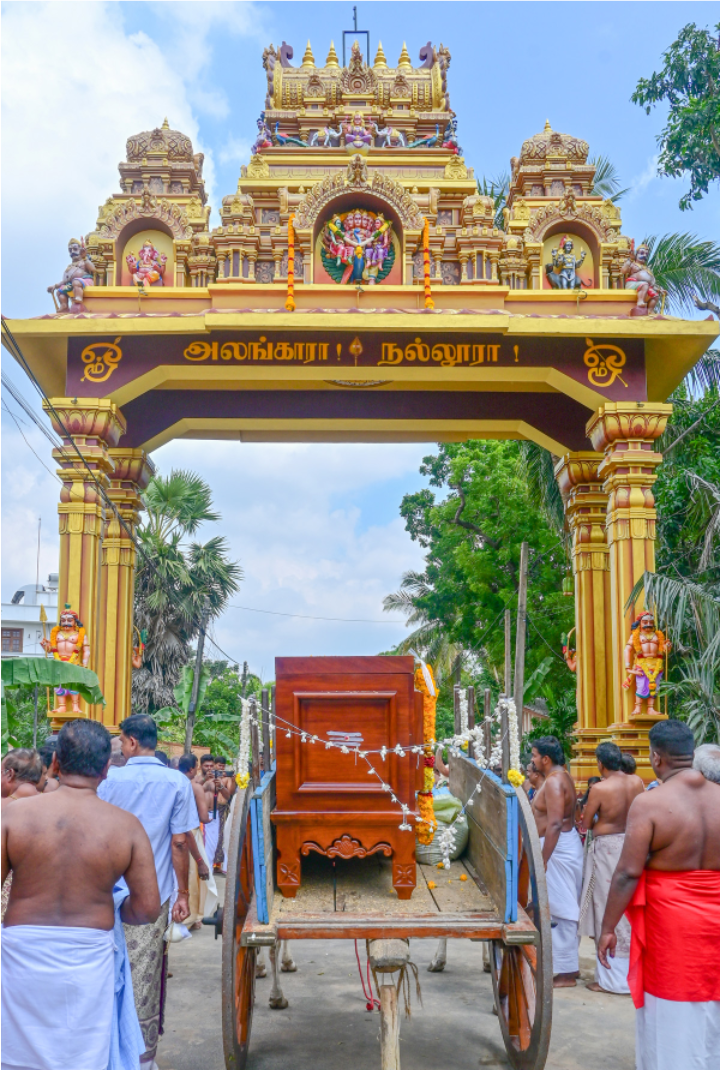 அதனை தொடர்ந்து நெல்மணிகள் நிரப்பபட்ட பெட்டகம் நல்லூர் ஆலயத்தினை அடைந்து ஆலயத்திற்கு கொண்டு செல்லப்பட்டு சிவாச்சாரியாரிடம் கையளிக்கப்பட்டது.
