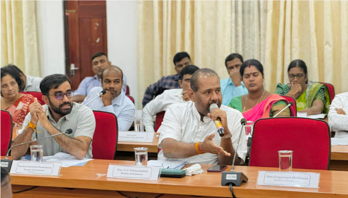 யாழ்ப்பாண மாவட்டத்தில் 2025 ஆம் ஆண்டிற்கான பன்முகப்படுத்தப்பட்ட வரவு செலவு வேலைத்திட்டங்களை நடைமுறைப்படுத்தல் தொடர்பான கலந்துரையாடல் இன்றைய தினம் (14.02.2025) மு.ப 9.30 மணிக்கு மாவட்ட ஒருங்கிணைப்புக் குழுத் தலைவரும், கடற்றொழில் நீரியல் மற்றும் கடல் வளங்கள் அமைச்சருமான இராமலிங்கம் சந்திரசேகர் தலைமையில் நடைபெற்றது .