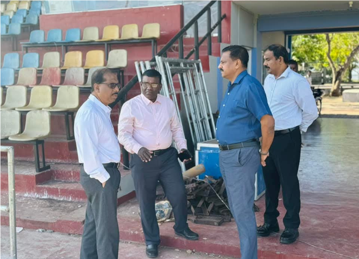 யாழ்ப்பாண மாவட்டத்திற்கு வருகை தந்த இளைஞர் விவகார மற்றும் விளையாட்டுத்துறை அமைச்சர் கெளரவ.சுனில்குமார கமகே (Minster of Ministry of youth affairs and Sports Hon. Minister SunilKumara Gamage) அவர்களும் யாழ்ப்பாண மாவட்ட அரசாங்க அதிபர் மருதலிங்கம் பிரதீபன் அவர்களும் இணைந்து யாழ் துரையப்பா விளையாட்டு அரங்கினை இன்றையதினம் (16.02.2025) பார்வையிட்டனர்.