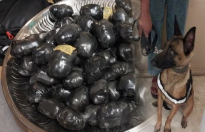 விமான நிலைய அதிகாரிகள் அதிர்ச்சி; காட்டிக்கொடுத்த மோப்ப நாய்