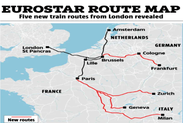 லண்டன் St Pancras ரயில் நிலையம் விரிவாக்கப்பட்டு, மிலான், ஜெனீவா, சூரிச் உள்ளிட்ட ஐரோப்பிய நகரங்களுக்கு நேரடி ரயில் சேவைகள் தொடங்கப்பட உள்ளன.