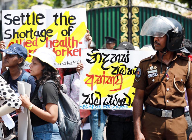 மேலும் சுகாதார சேவைக்கான வெற்றிடங்களை உடனடியாக நிரப்பு, இணை சுகாதார பட்டதாரிகளுக்கு உடனடியாக சேவைப்பயிற்சி வழங்கு, இலவசக் கல்வியை விலைபேசும் கொத்தலாவல பல்கலைக்கழகங்களின் இணை சுகாதார பட்டத்தை அரச சேவை அங்கீகரிக்கும் அராஜகத்தை நிறுத்து, நியாயமற்ற தேர்வு பரீட்சை முறையை நிறுத்து ஆகிய வாசகங்கள் எழுதிய பதாதைகளை ஏந்தியவாறு பட்டதாரிகள் போராட்டத்தில் ஈடுபட்டனர்.