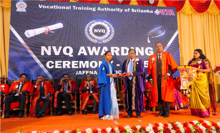 இலங்கை தொழிற்பயிற்சி அதிகாரசபையின் யாழ். மாவட்டத்திலுள்ள கற்கை நிலையங்களில் கல்வி பயின்ற மாணவர்களுக்கு என்.வி.கியூ. சான்றிதழ் வழங்கும் நிகழ்வு யாழ்ப்பாணம், நாச்சிமார் கோவிலடியிலுள்ள சரஸ்வதி மண்டபத்தில் இன்று செவ்வாய்க்கிழமை (11.03.2025) நடைபெற்றது. இந்த நிகழ்வில் வடக்கு மாகாண ஆளுநர் பிரதம விருந்தினராகக் கலந்துகொண்டார்.