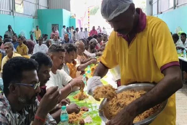 மேலும், 100 நபர்களுக்கு 1500 ரூபாய் மதிப்புள்ள கிப்ட் பொருள்களையும் வழங்கினார். அதுமட்டுமல்லாமல், அனைவருக்கும் சுடச்சுட மட்டன் பிரியாணி, வஞ்சிரம் மீன், உள்ளிட்ட அசைவ விருந்து வழங்கினார்.