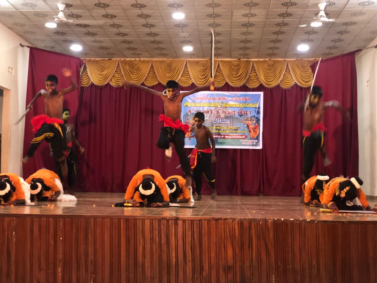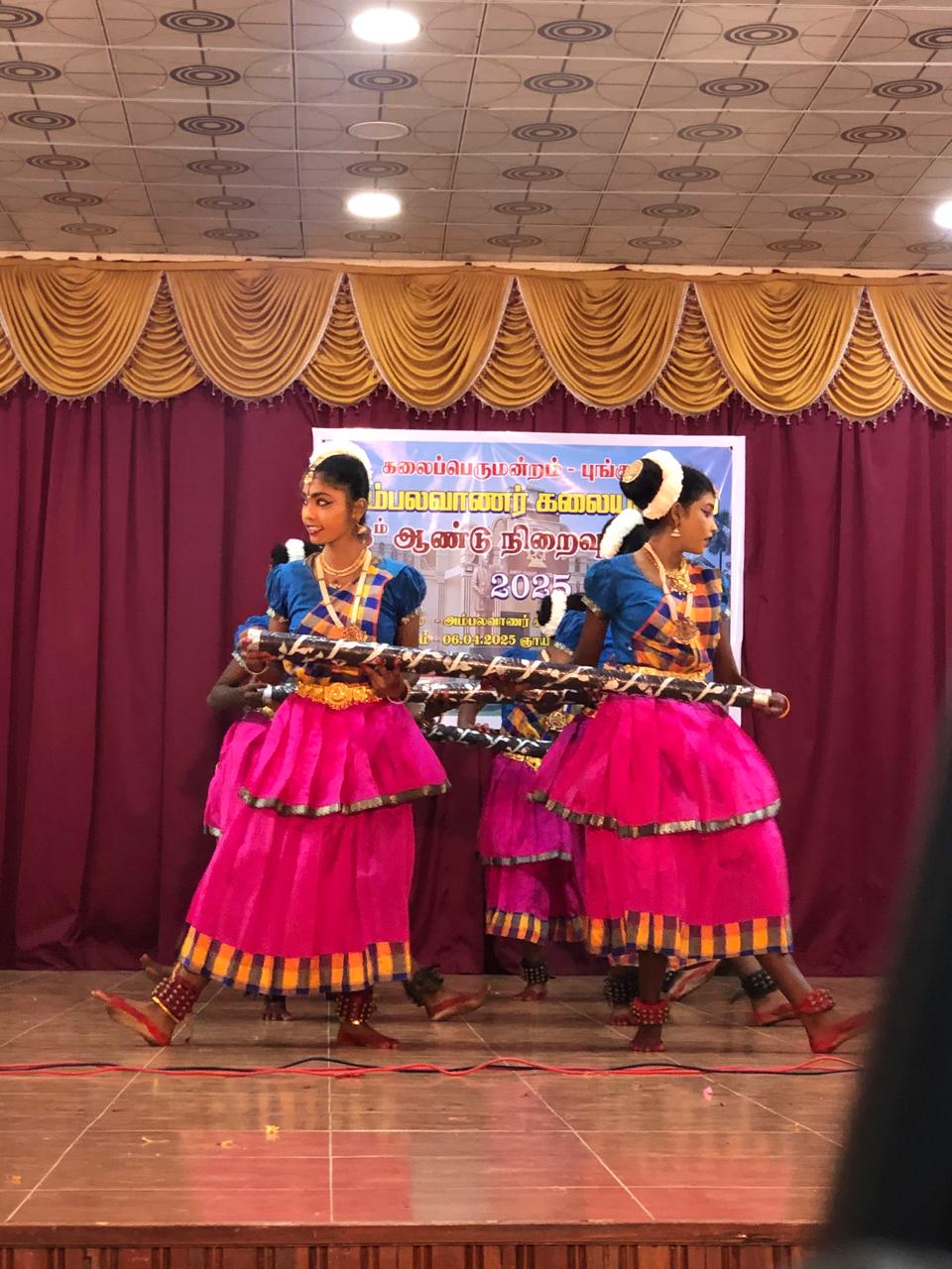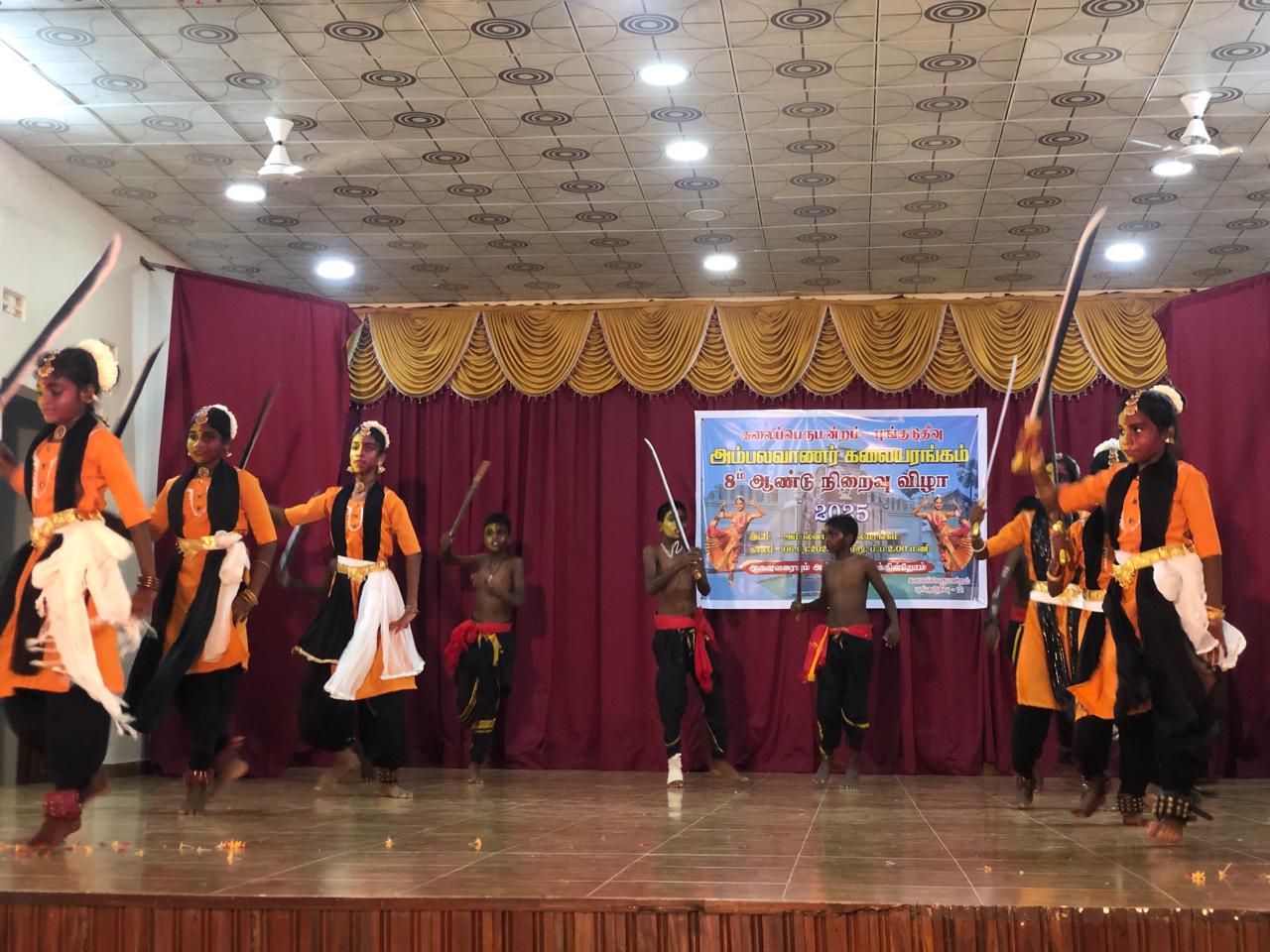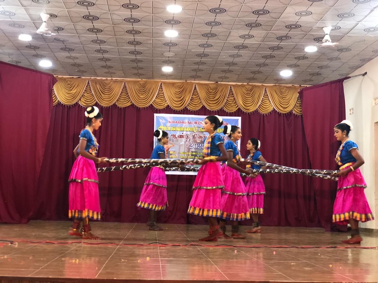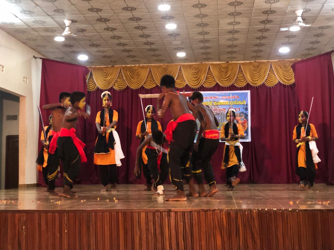 விருந்தினர்களின் உரையுடன், கும்மி நடனம், கோலாட்டம், வாள் நடனம், குடக்கூத்து, கிராமிய நடனம், உலக்கை நடனம், தனி நடனம் குழு நடனம் போன்ற பல்வேறு நடன நாட்டிய நிகழ்வுகள், இன்னும் சில கலை நிகழ்ச்சிகளும், நடைபெற்றதுடன் நடனக் கலைஞர்கள், மற்றும் மாணவ மாணவிகளுக்கான பரிசில்கள் வழங்கல் போன்ற பல்வேறு நிகழ்வுகளுடன் நிகழ்வு சிறப்பாக நடைபெற்றது.