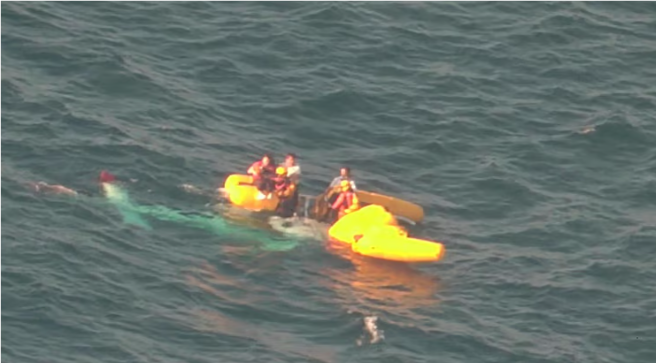 இந்த விபத்தில் 66 வயதான ஹெலிகாப்டர் பைலட், உதவியாளர், மருத்துவப் பணியாளர் ஆகியோர் இந்த விபத்தில் கடலோர காவல்படையினரால் காப்பாற்றப்பட்டனர்.