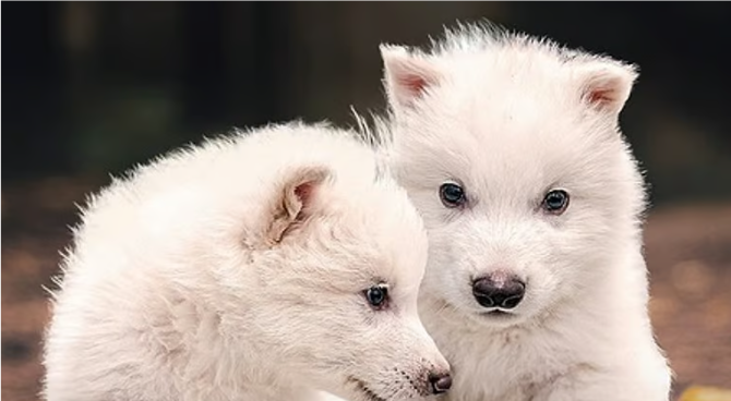 பிறந்து மூன்று முதல் ஆறு மாதங்கள் வரை ஆகியுள்ள அந்தக் குட்டிகள், டையா் ஓநாய்களைப் போலவே நீண்ட வெள்ளை ரோமங்கள், உறுதியான தாடைகள் ஆகியவற்றைக் கொண்டுள்ளன. இப்போதே 36 கிலோவுக்கு மேல் எடையுடன் இருக்கும் அந்தக் குட்டிகள், முழுவதும் வளா்ந்தால் 63 கிலோ எடை கொண்டதாக இருக்கும் என்று எதிா்பாா்க்கப்படுகிறது. டையா் ஓநாய்களும் அந்த அளவுக்கு மிகப் பெரிய தோற்றத்தைக் கொண்டதாக இருந்ததாகக் கருதப்படுகிறது.