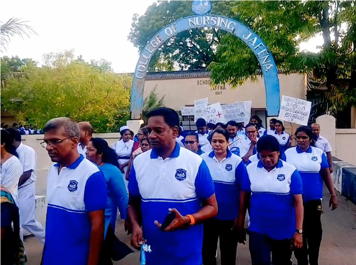 யாழில். தாதிய மாணவர்களின் நடைபயணம்