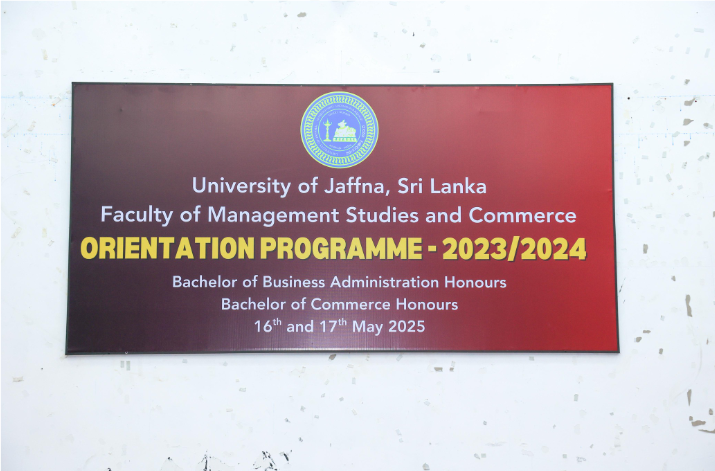 யாழ்ப்பாணப் பல்கலைக்கழக முகாமைத்துவ கற்கைகள் மற்றும் வணிக பீடத்துக்குத் தெரிவுசெய்யப்பட்டுள்ள புதுமுக மாணவர்களுக்கான திசைமுகப்படுத்தல் நிகழ்வு இன்று 16 ஆம் திகதி வெள்ளிக்கிழமை இடம்பெற்றது.