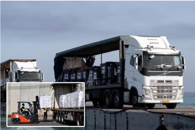 புதன்கிழமை இரவு கெரெம் ஷாலோம் கடக்கும் இடத்தில் இருந்து மாவு, குழந்தை உணவு மற்றும் மருத்துவ உபகரணங்கள் போன்ற அத்தியாவசிய பொருட்கள் அடங்கிய இந்த உதவிகள் கொண்டு செல்லப்பட்டன.