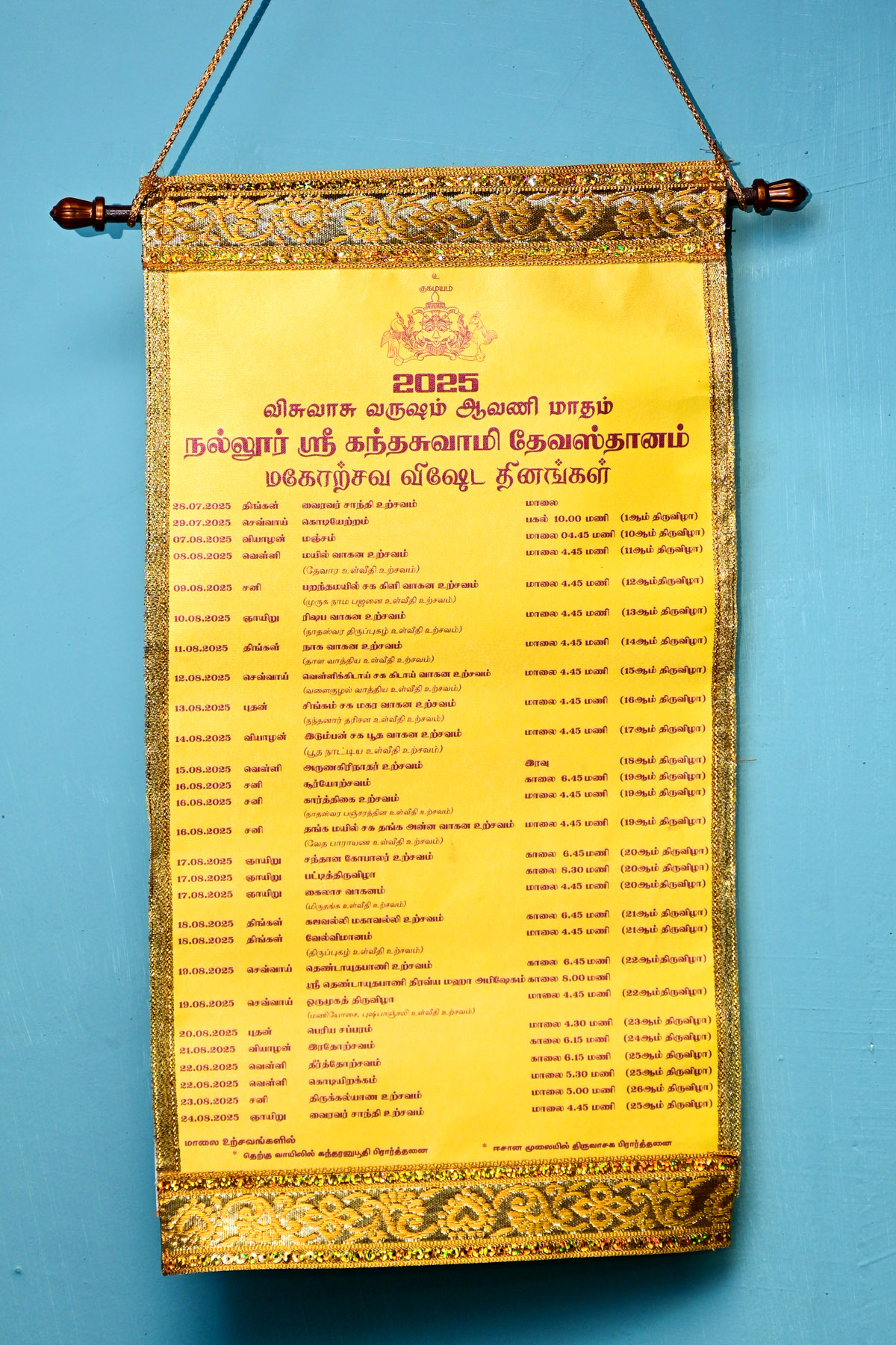 நல்லூர் கந்தசுவாமி கோவில் வருடாந்த பெருவிழா எதிர்வரும் ஜீலை 29ஆம் திகதி கொடியேற்றத்துடன் ஆரம்பமாகி, தொடர்ந்து இருபத்தைந்து தினங்கள் நடைபெறவுள்ளது.