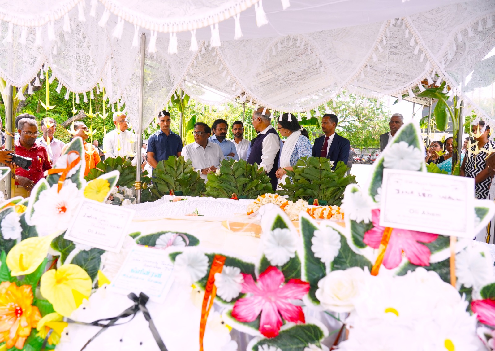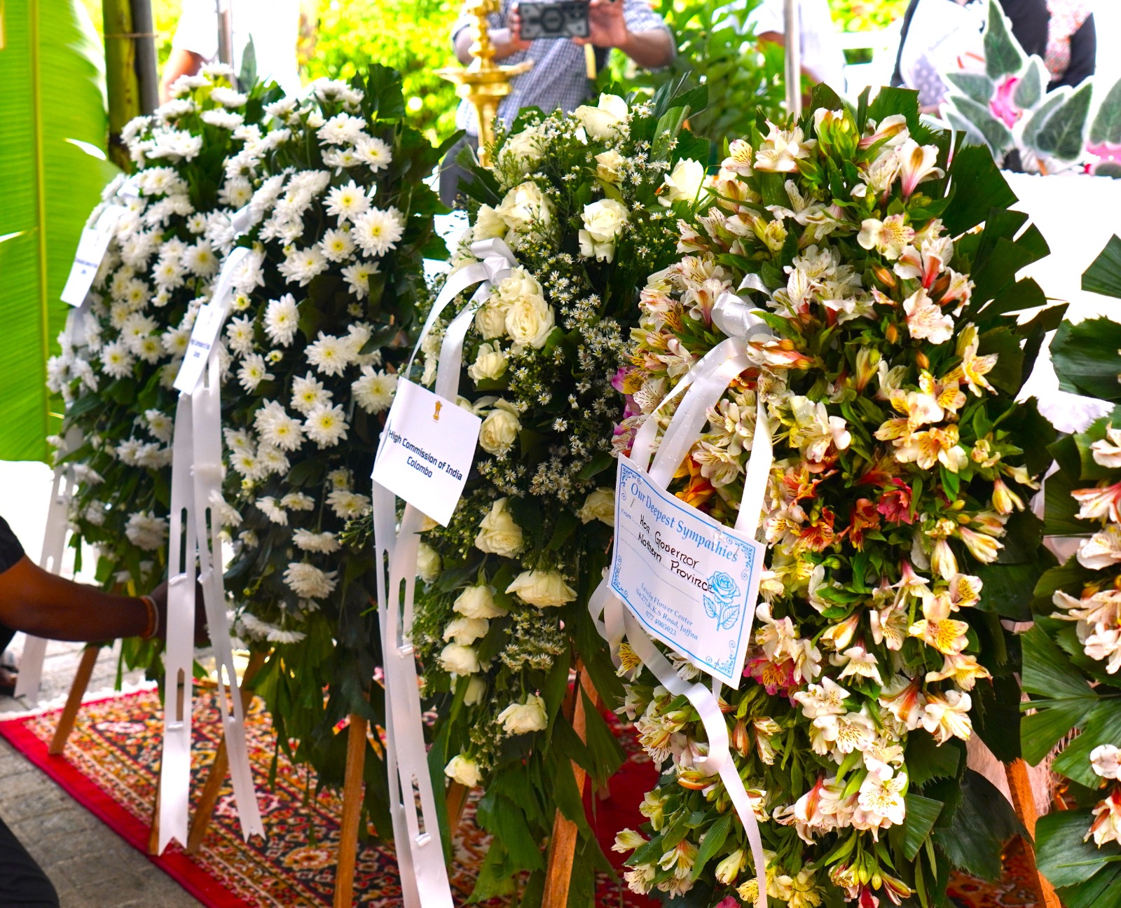 யாழ்ப்பாணம் திருவள்ளுவர் கலாசார மண்டபத்தில் அஞ்சலிக்காக இன்று வைக்கப்பட்டிருந்த சமயம் ஆளுநர் அஞ்சலி செலுத்தியதுடன், இலங்கைக்கான இந்தியத் தூதுவர் சந்தோஷ; ஜா அவர்களும் கலந்துகொண்டிருந்தமை குறிப்பிடத்தக்கது.
