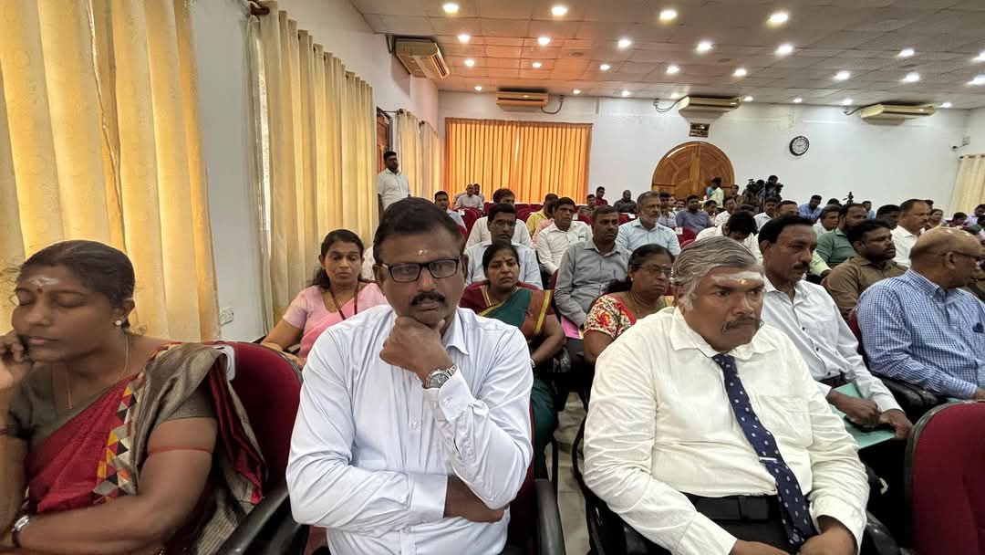 யாழ் மாவட்ட ஒருங்கிணைப்பு குழு கூட்டம் யாழ் மாவட்ட செயலக கேட்போர் கூடத்தில் 30 05 2025 இடம்பெற்றபோது கோப்பாய் ஆசிரியர் கலாசாலையை கல்வியியல் கல்லூரியுடன் இணைப்பது தொடர்பான விவகாரம் எடுத்துக் கொள்ளப்பட்டது