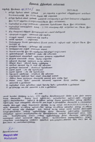 அதன்படி தையிட்டி திஸ்ஸ விகாரைக்கு அருகில் நாளையும் (10.06.2025) நாளை மறுதினமும் (11.06.2025) ஆர்ப்பாட்டம் செய்ய வேண்டாம் என்று அறிவித்து, தமிழ்த் தேசிய மக்கள் முன்னணியின் தலைவரும் நாடாளுமன்ற உறுப்பினருமான கஜேந்திரகுமார் பொன்னம்பலம் உள்ளிட்ட 27 பேருக்கு நீதிமன்றம் தடை உத்தரவு பிறப்பித்துள்ளது.