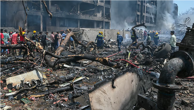 முழு வீச்சில் மீட்புப் பணி: விபத்தைத் தொடா்ந்து, தேசிய பேரிடா் மீட்புப் படையின் 6 குழுக்கள், எல்லைப் பாதுகாப்புப் படையின் 2 குழுக்கள், மத்திய தொழிலக பாதுகாப்புப் படை, காவல் துறை மற்றும் தீயணைப்புப் படையினா் முழு வீச்சில் மீட்புப் பணியில் ஈடுபட்டனா். கடும் சவாலுடன் நடைபெற்ற இப்பணியில், எரிந்த நிலையில் உடல்கள் மீட்கப்பட்டு மருத்துவமனைக்கு கொண்டுவரப்பட்டன. இக்காட்சிகள், இதயத்தை உலுக்குவதாக இருந்தன.