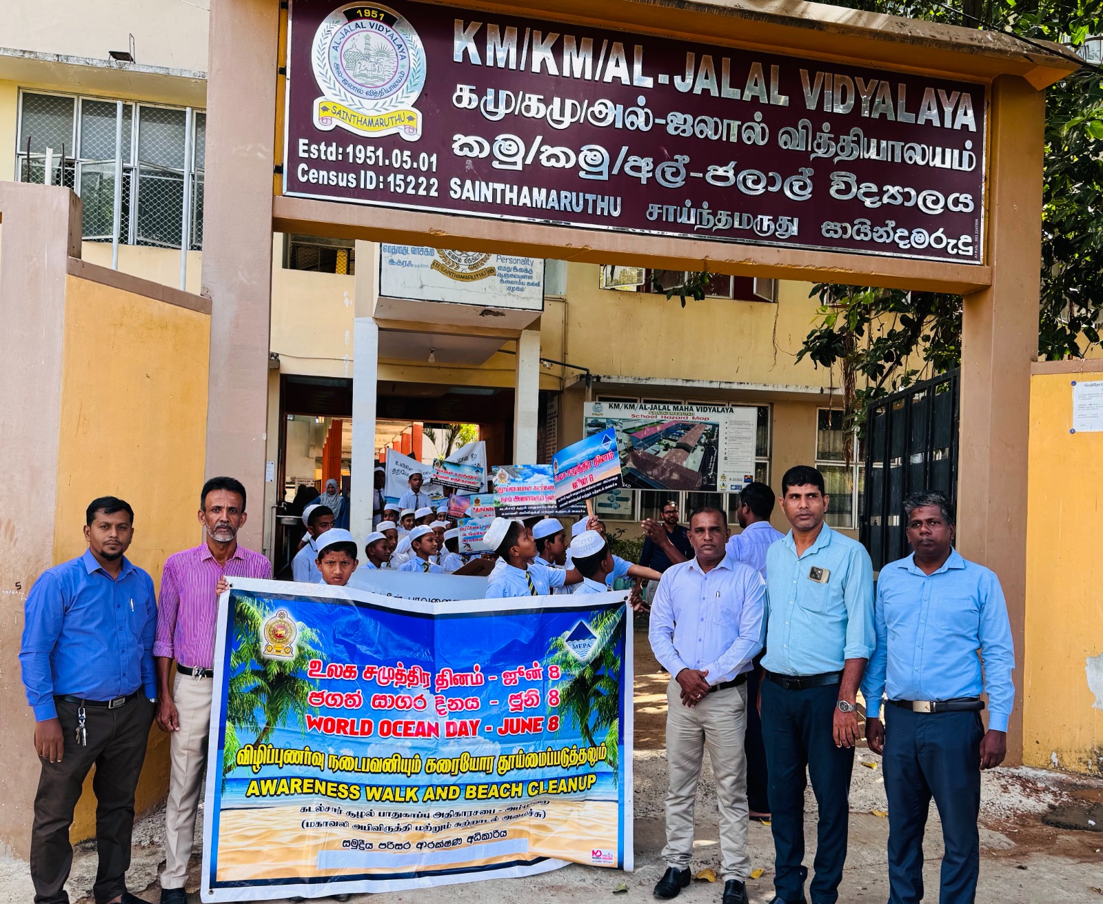 ஜூன் 8 ஆம் திகதி அனுஷ்டிக்கப்படும் உலக சமுத்திர தினத்தையும் ஜூன் 6 ஆம் திகதி அனுஷ்டிக்கப்படும் உலக சுற்றாடல் ஆகியவற்றை பாடசாலை மாணவர்கள் ஊடாக சமூகத்துக்கு கொண்டு சேர்க்கும் விழிப்புணர்வு மற்றும் அறிவுறுத்தல் நிகழ்வும் கடல் சூழல் பாதுகாப்பு அதிகாரசபையினால் நேற்று முன்தினம் ( 12) சாய்ந்தமருது அல்-ஜலால் வித்தியாலயத்திலும் அதனுடன் இணைந்த சுற்றுச்சூழல் பகுதியிலும் இடம்பெற்றது.