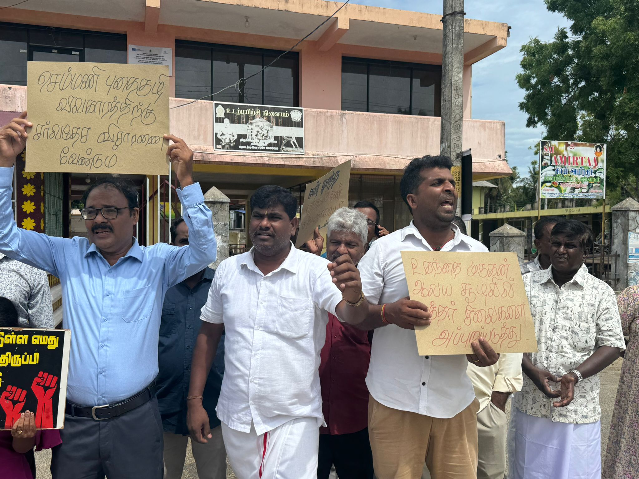 போராட்டம் நடைபெற்ற பகுதிக்கு தவிசாளரது பெயரை கூறி வருகை தந்த சிலர் போராட்டத்தில் ஈடுபட்டவர்களை மிரட்டியதுடன் வாக்குவாதத்திலும் ஈடுபட்டனர்.