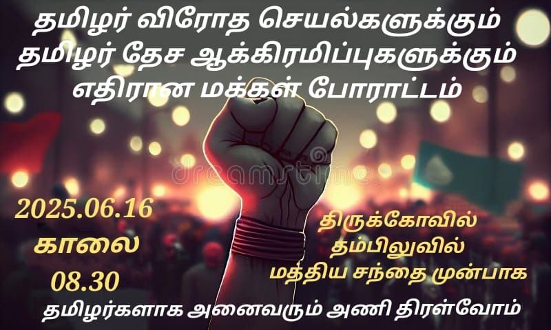 தமிழர் விரோத செயல்களுக்கும் தமிழர் தேச ஆக்கிரமிப்புகளுக்கும் எதிரான மக்கள் போராட்டம் தமிழர்களாக உணர்வோடும் உரிமையோடும் அணி திரள்வோம் என்ற தொனிப்பொருளில் அம்பாறை மாவட்டம் திருக்கோவில் தம்பிலுவில் மத்திய சந்தை முன்பாக திங்கட்கிழமை(16) நடைபெற்ற போது பதற்ற நிலைமை ஏற்பட்டது.
