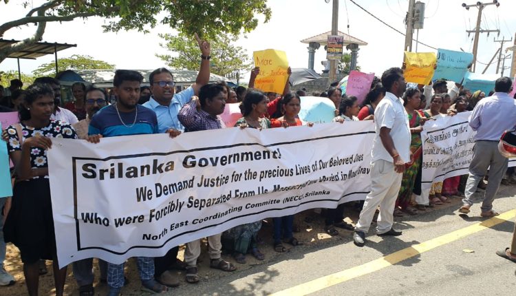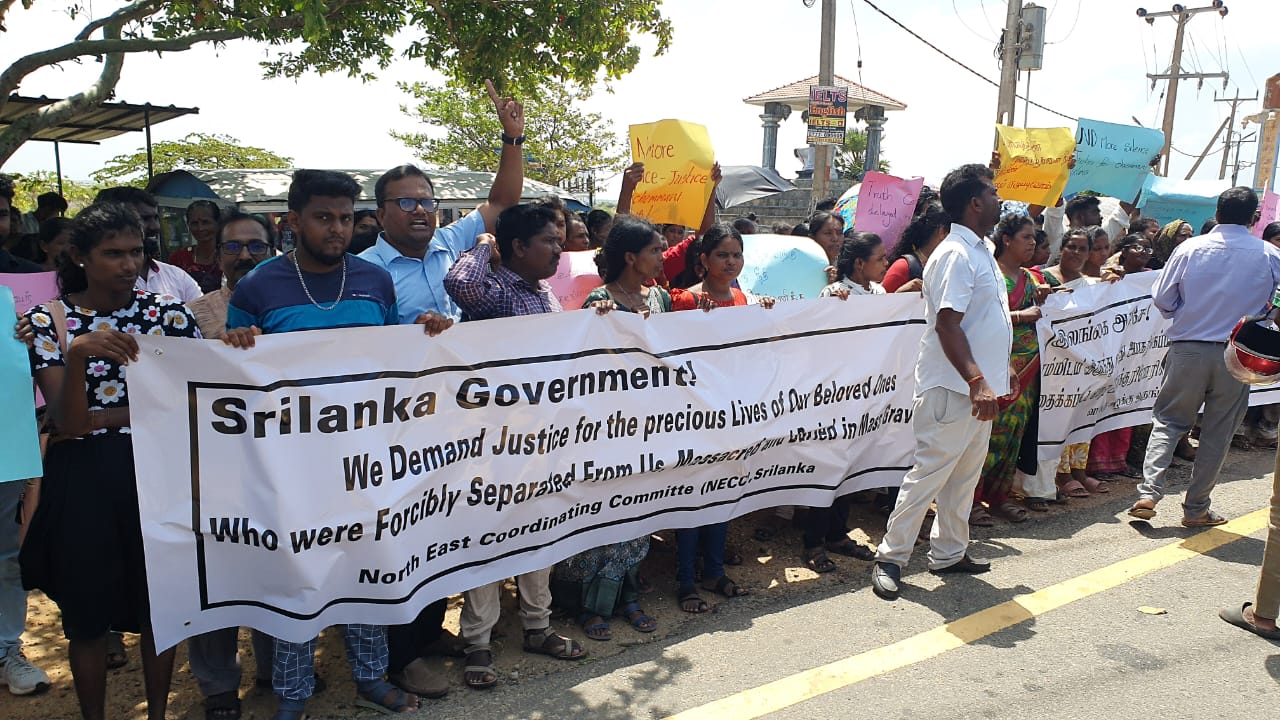 இலங்கை அரசே எம்மிடம் இருந்த வலிந்து அபகரிக்கபட்டு படுகொலை செய்யப்பட்டு மனித புதைகுழிகளில் புதைக்கப்பட்ட எமது அன்புக்குரியோரின் பெறுமதி மிக்க நீதி கோருகின்றோம் எனும் தொனிப்பொருளில் வடக்கு கிழக்கு ஒருங்கிணைப்பு குழுவினால் செம்மணியில் இன்று காலை 10 மணிமுதல் கவனயீர்ப்பு ஆர்ப்பாட்டம் நடைபெற்றது.
